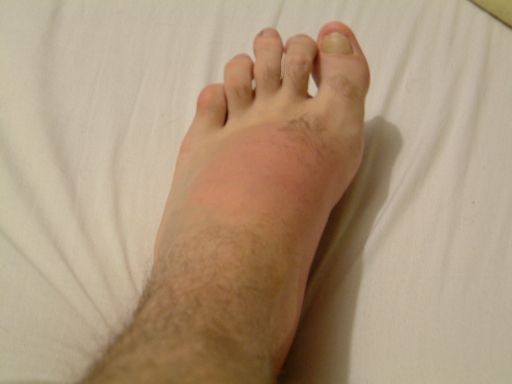 Left Foot - You can see the redness more in this picture. That is a problem taking pics sometimes the redness and inflammation doesn't always show up to well, also you need a comparison but that's hard to do when you are taking the pics yourself. But you can clearly see this foot is really swollen and red.